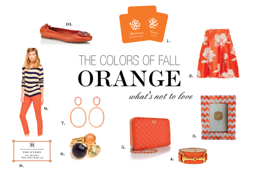 The color orange has been somewhat of an obsession lately, think bedroom decked in orange hotel bedding with monogrammed pillows + orange chinoiserie window treatments or a foyer painted orange with gold + black accents. So naturally we were excited to feature the color orange as one of the vibrant colors of Fall that inspires us. What are some of your orange loves?